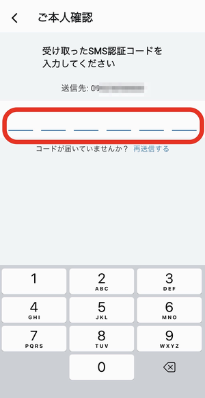 「電話番号」を入力し、「認証コードを送信」ボタンを押します。
