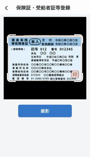 自身の保険証をアプリ内のカメラで写し「撮影」を押します。