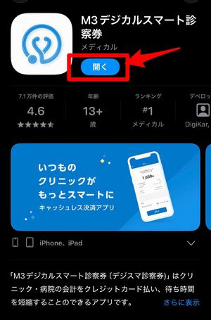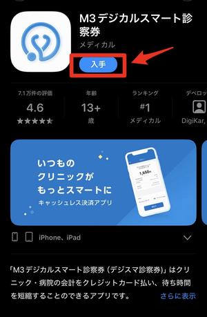 カメラでQRコードを写して、「デジスマ診療」をダウンロードします。