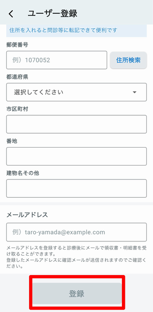 必要事項を記入してください。記入後に登録ボタンを押してください。