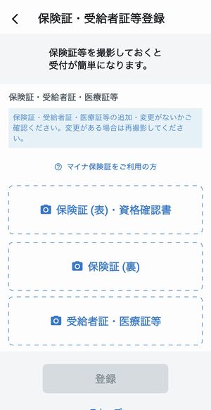 自身の保険証をアプリ内のカメラで写し「撮影」を押します。
